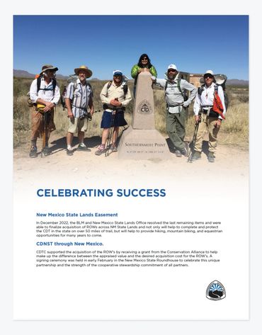 The Continental Divide National Scenic Trail (CDT) stretches from the Mexican border to Canada and is maintained through a partnership between federal agencies and nonprofit organizations.